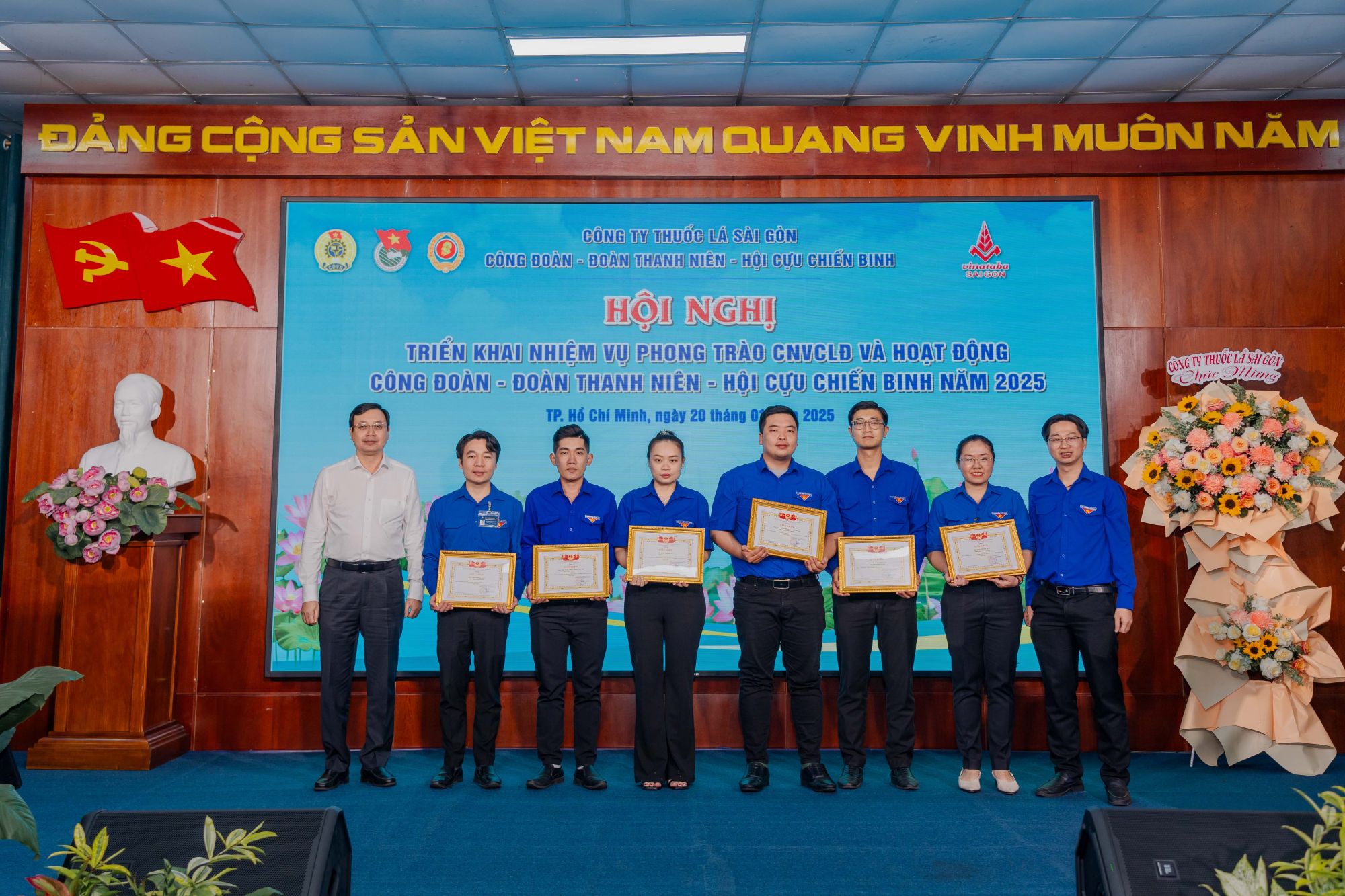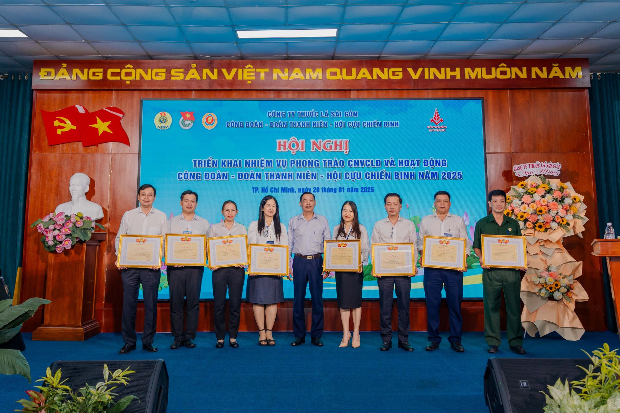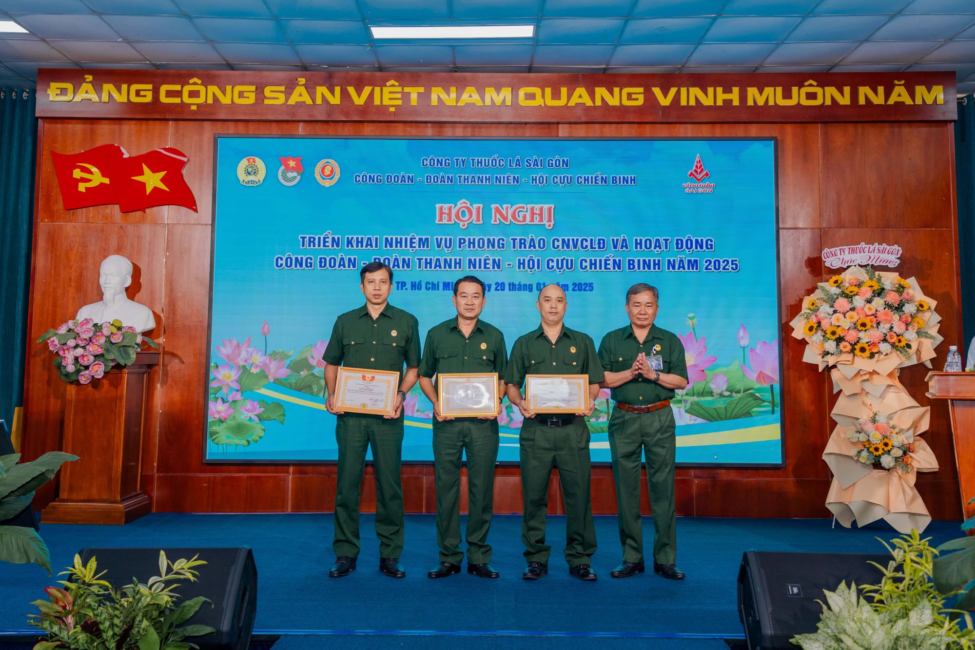 Trong không khí cả nước ra sức thi đua lao động sản xuất, quyết tâm thực hiện thắng lợi Nghị Quyết Đại hội Đảng toàn quốc lần thứ XIII, vào ngày 20/01/2025 vừa qua, Công đoàn, Đoàn Thanh niên và Hội Cựu Chiến binh Công ty Thuốc lá Sài Gòn đã phối hợp tổ chức Hội nghị triển khai nhiệm vụ công tác Công đoàn, Đoàn Thanh niên và Hội Cựu Chiến binh trong năm 2025.